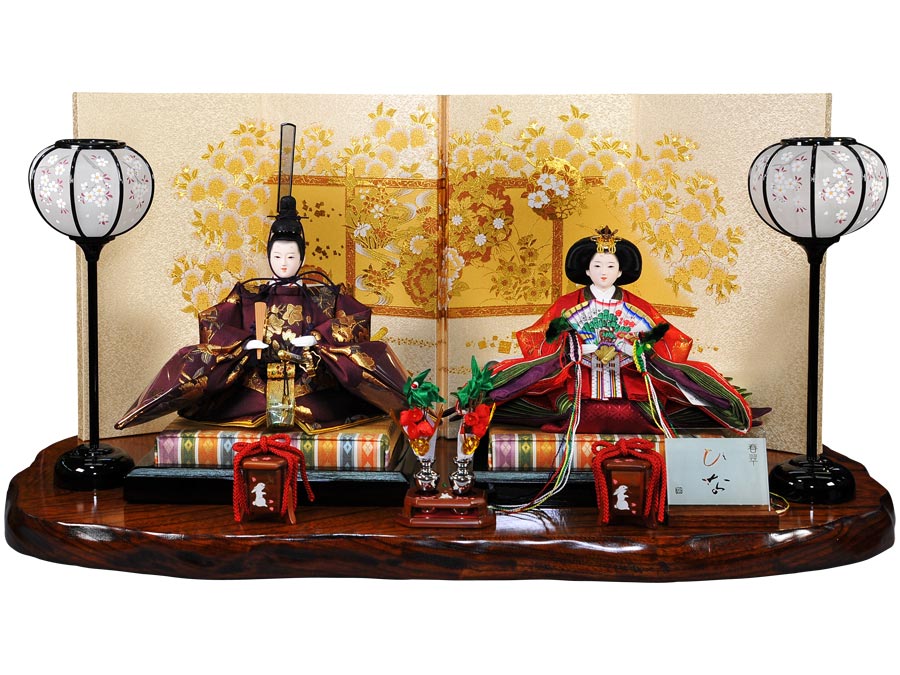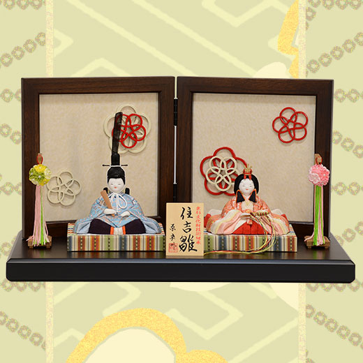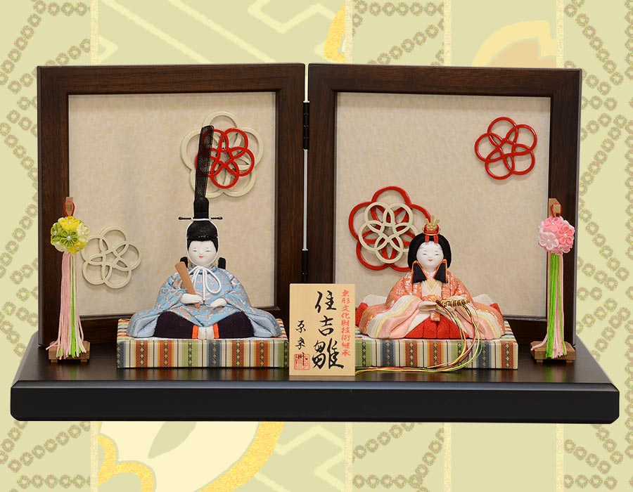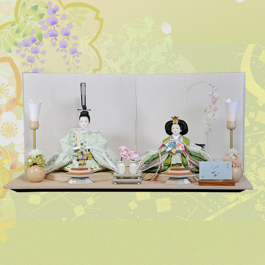- 端正な孝洲の木目込み人形を木目オーク梅結び屏風で飾ってみました。