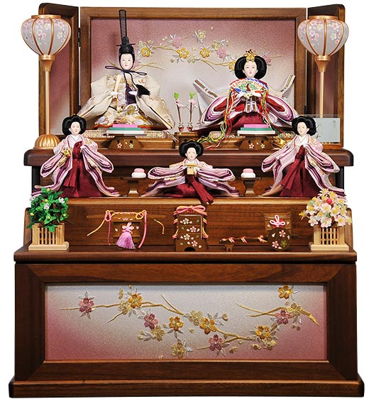 - 前収納式で飾りやすく仕舞いやすい三段飾りです。柄と材質で3種類
